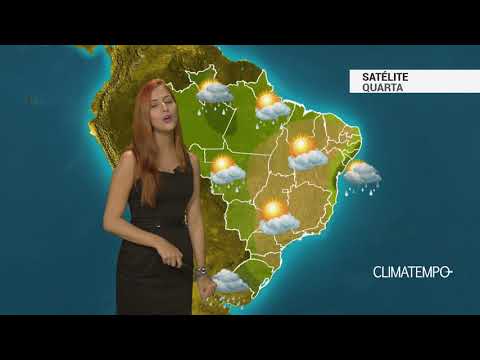 Boletim de previsão do tempo contendo informações sobre as imagens de satélite, previsão, temperatura mínima e máxima prevista e a tendência do tempo para os próximos dias.