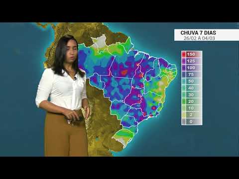 Confira a estimativa e a distribuição da chuva sobre o Brasil nos próximos sete dias.