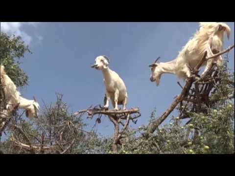 Na região de Essaouira, no Marrocos, é comum encontrar árvores repletas de cabras em sua copa. A explicação para esse fenômeno é a sobrevivência, pois, na árvore, elas conseguem se alimentar de frutos.
